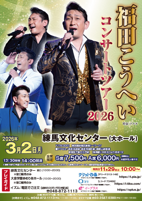 | 全席指定 S席:4,000円/A席:3,800円(税込) |