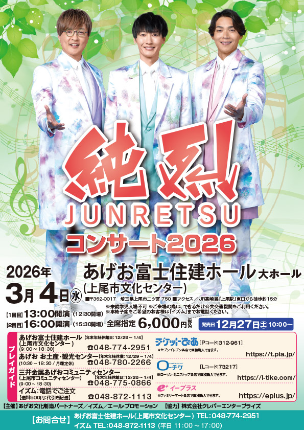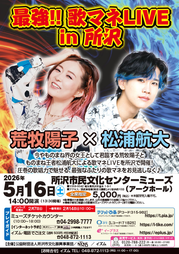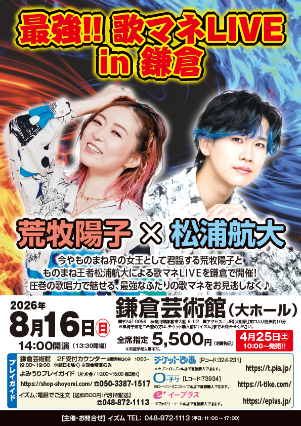 | 全席指定【一般】6,000円【当日】6,500円 【足立区民】5,800円(税込) |