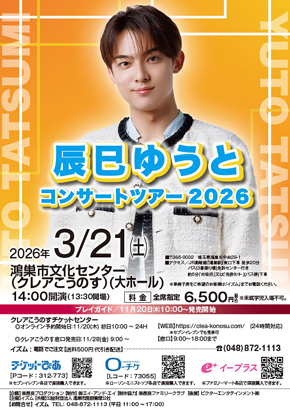 ※ローソン、ぴあ、イープラスにて購入の際、座席位置の指定はできません |
