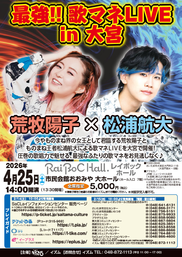 ※車いす席ご希望のお客様は、イズム(☏048-872-1113)までお電話ください。 |